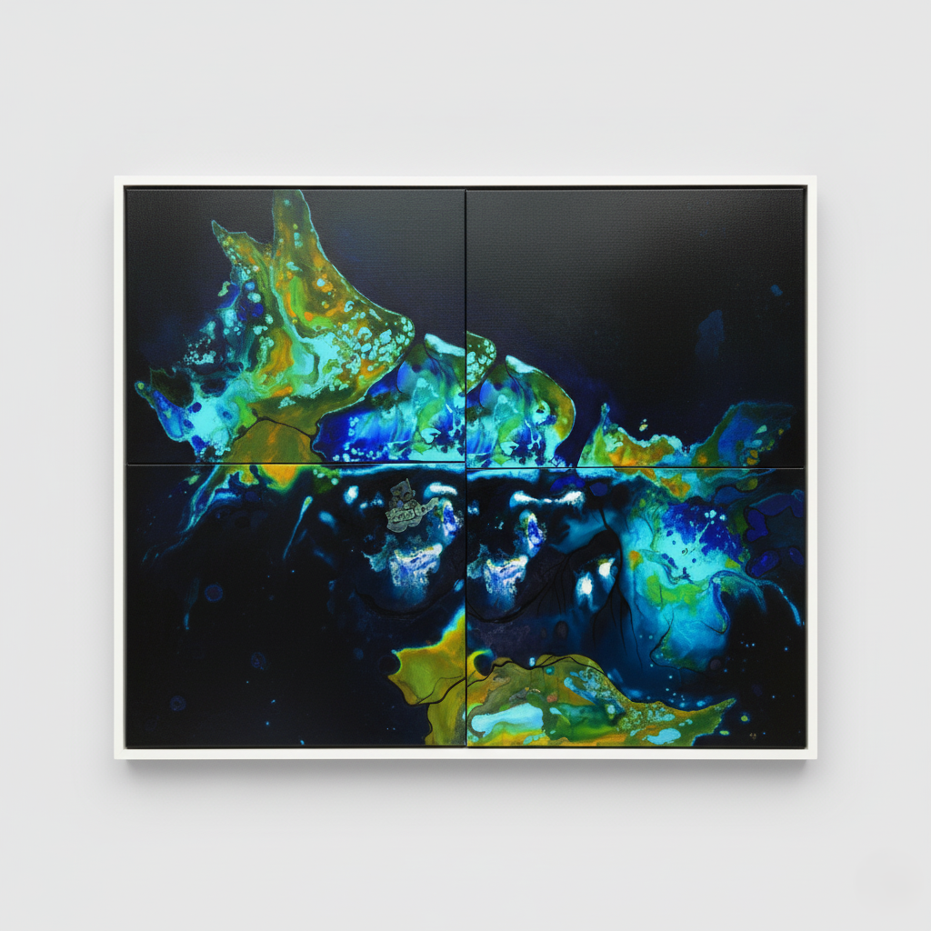 A mesmerizing diptych exploring the 'unswerving' interpretation of dreams. Luminous colors emerge from the darkness, symbolizing the mind's profound connection to the ethereal.